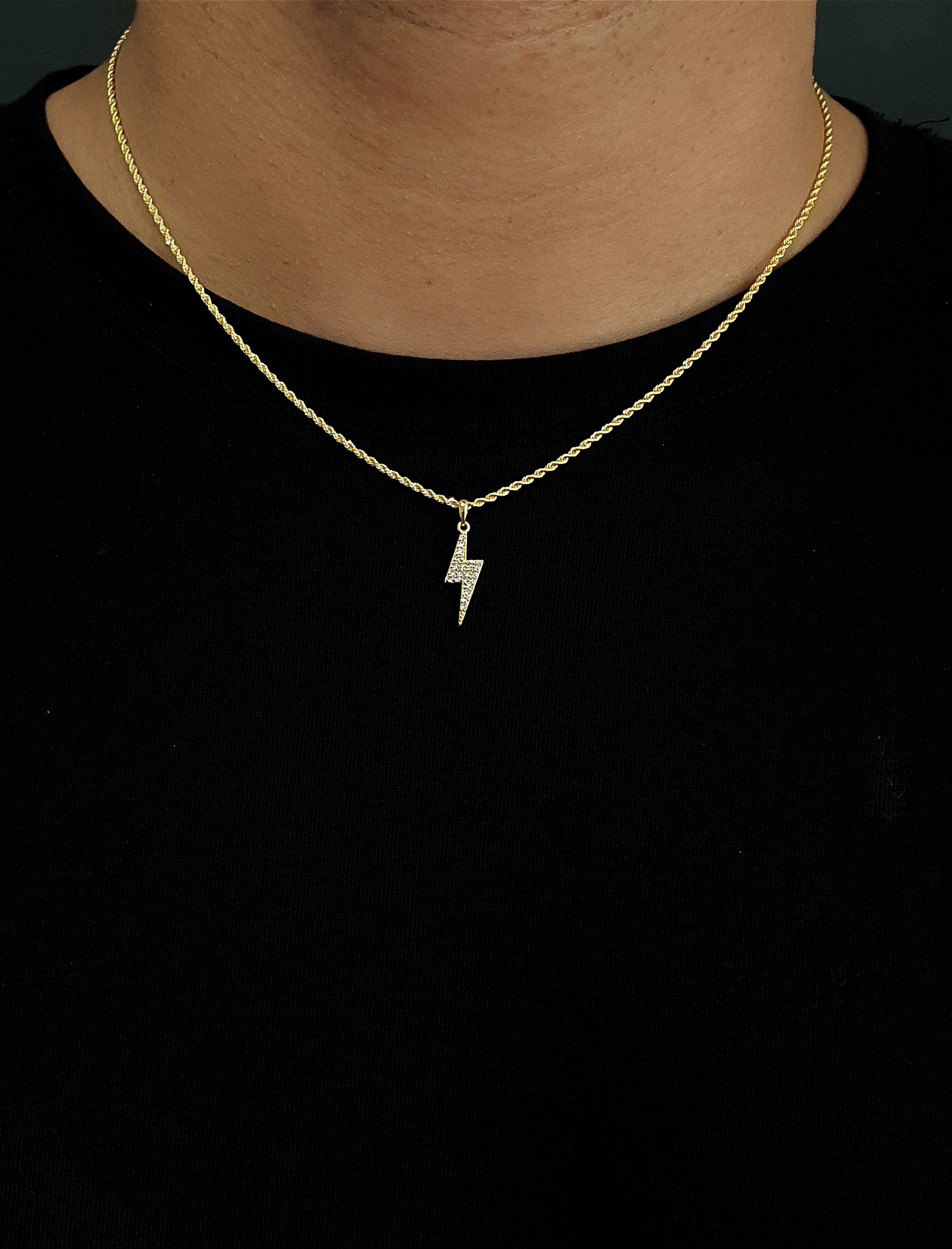 Corrente Cordão Baiano 50cm 1,6mm + Pingente Raio Cravejado (7,8x21mm) Banhado A Ouro 18k COR003-PIN078