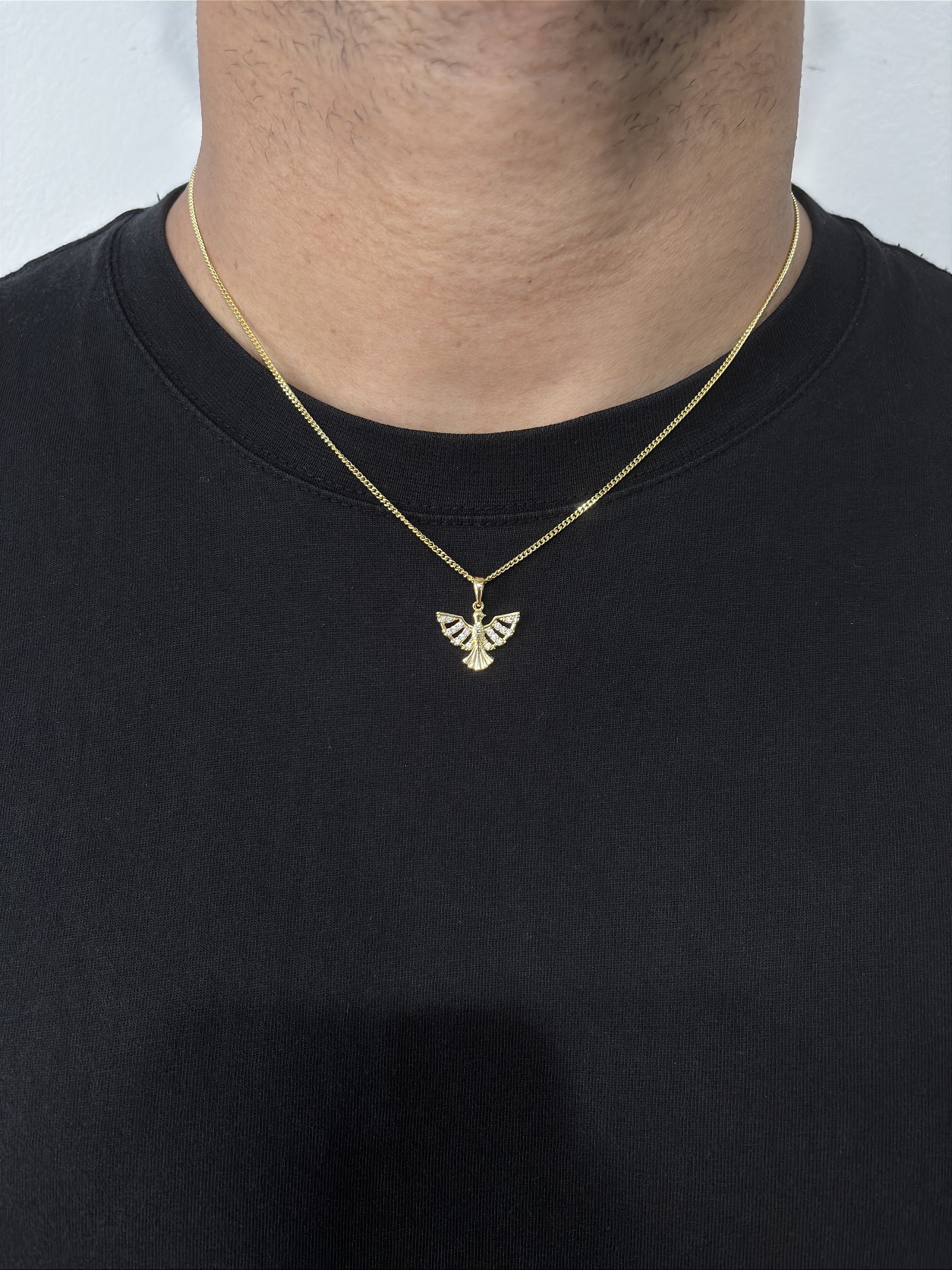 Corrente Grumet 50cm 1,4mm + Pingente Passaro Cravejado Banhado a Ouro 18k COR014-PIN142