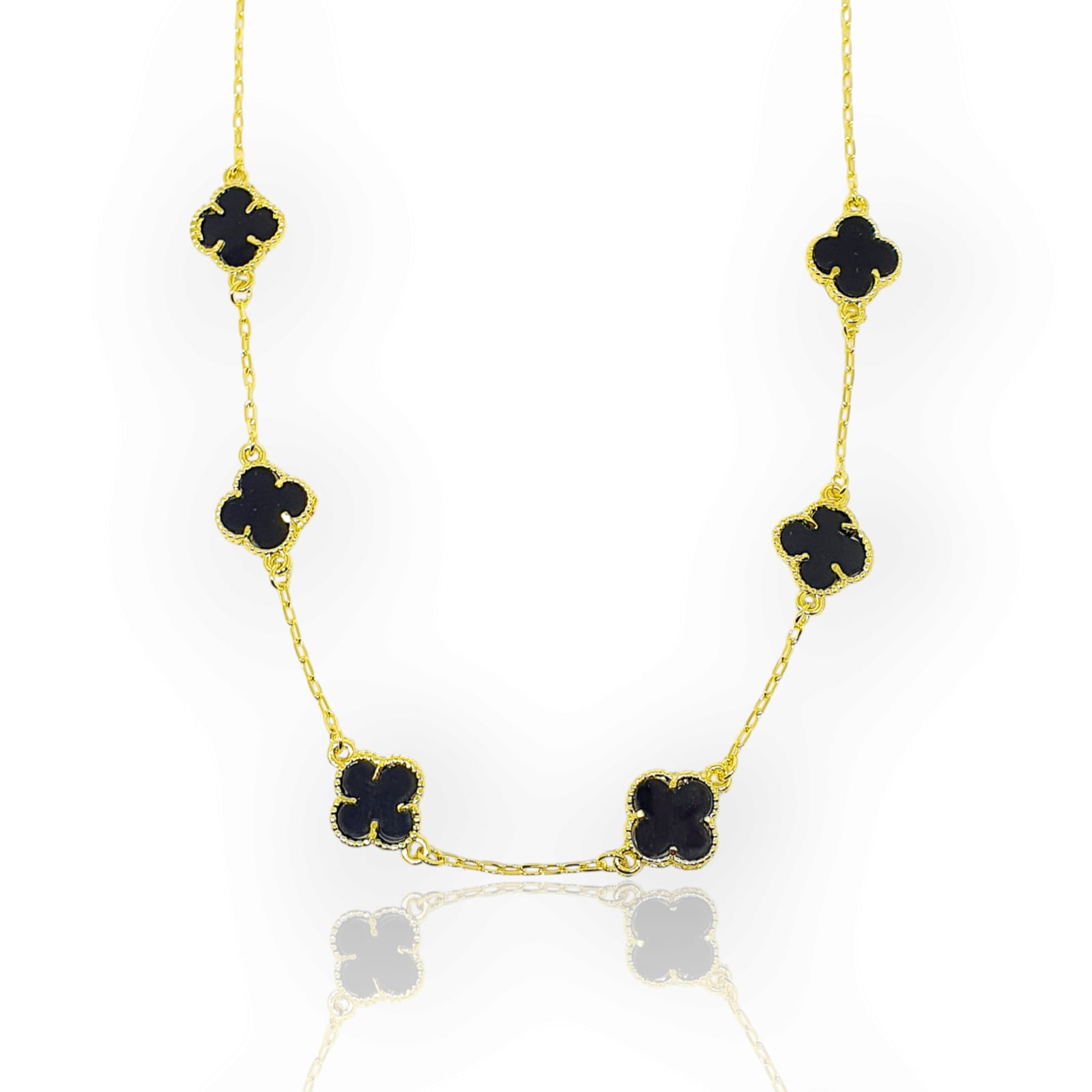 Corrente Trevo Preta 55cm Banhada A Ouro 18k COR070