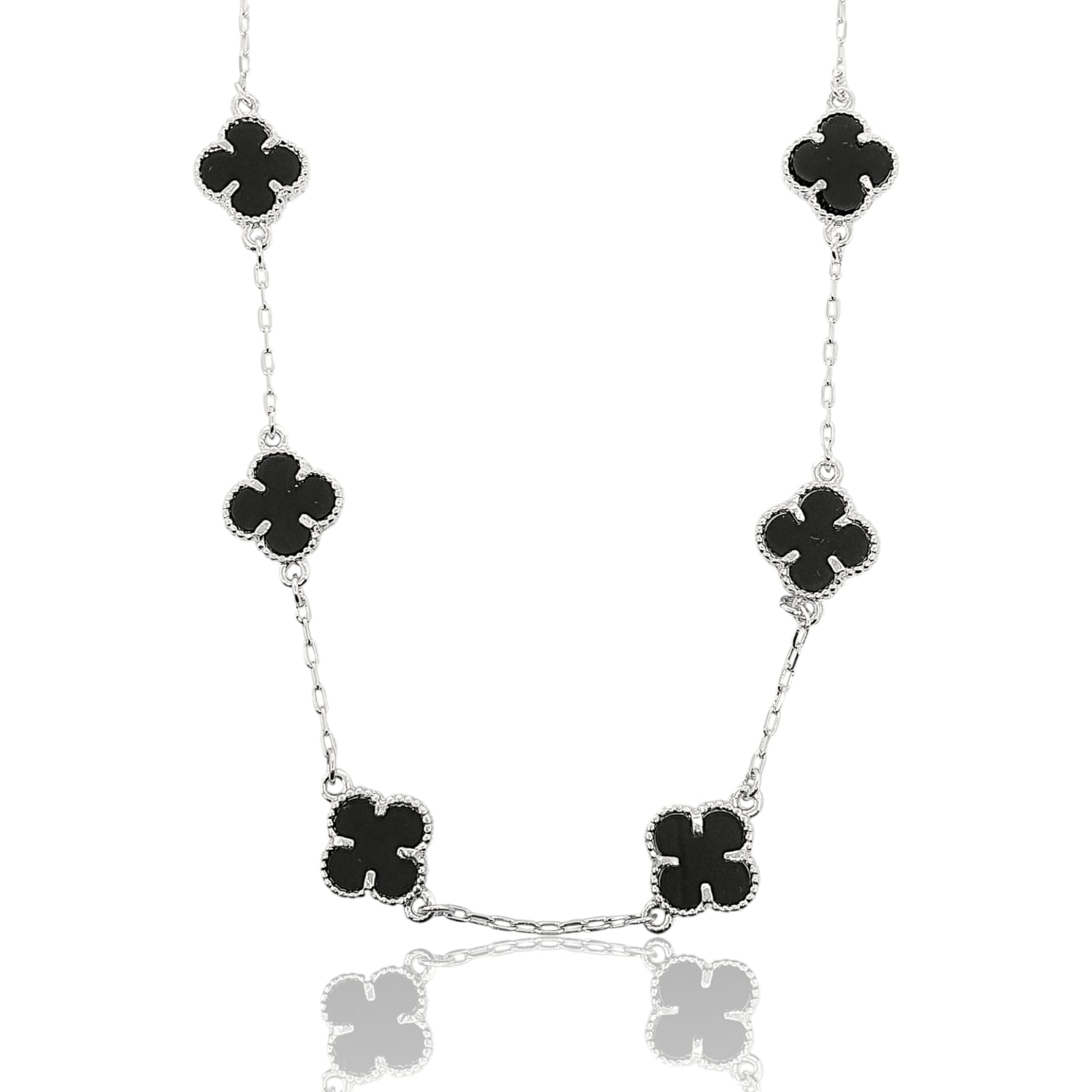 Corrente Trevo Preta 55cm Banhada A Ouro Branco COR071