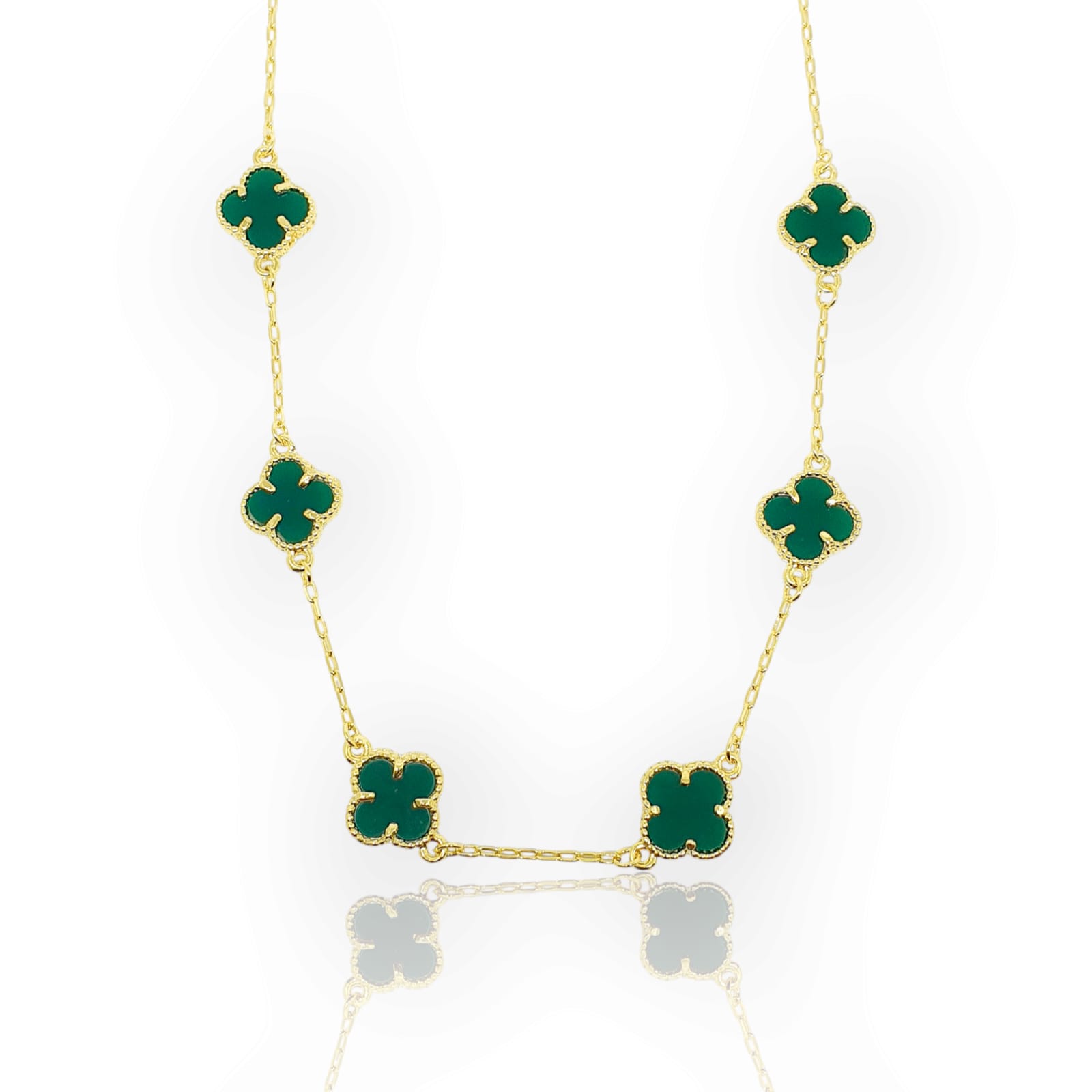 Corrente Trevo Verde 55cm Banhada A Ouro 18k COR068