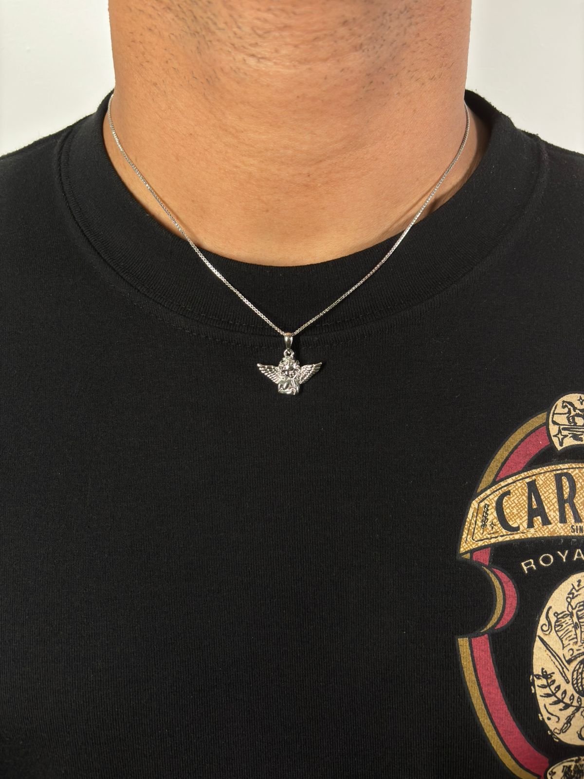 Corrente Veneziana 50cm 1mm + Pingente Anjo (24x17mm) Banhado A Ouro Branco COR002-PIN140