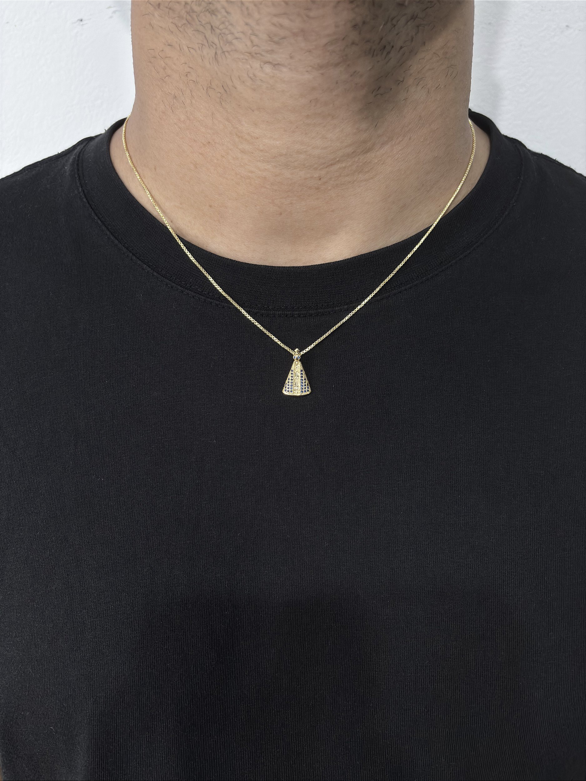 Corrente Veneziana 50cm 1mm + Pingente Nossa Senhora Cravejada Banhado a Ouro 18k COR009-PIN144
