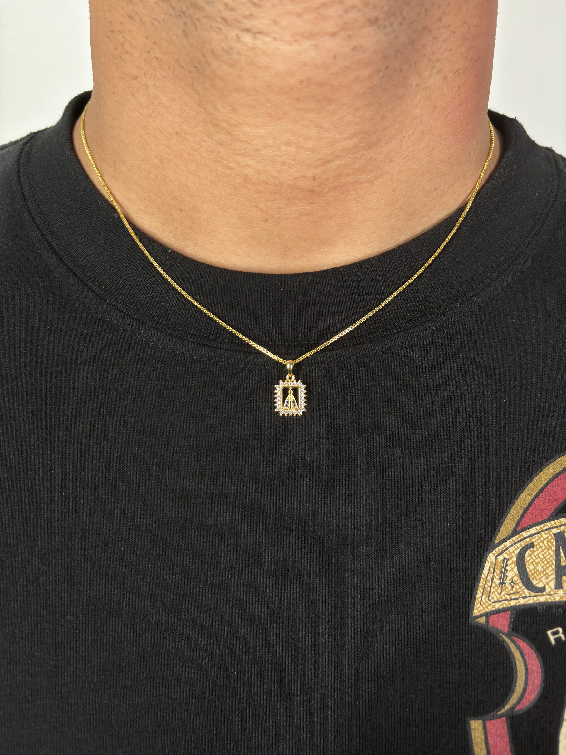 Corrente Veneziana 50cm 1mm + Pingente Nossa Senhora Plaquinha Cravejada Banhado a Ouro 18k COR009-PIN143