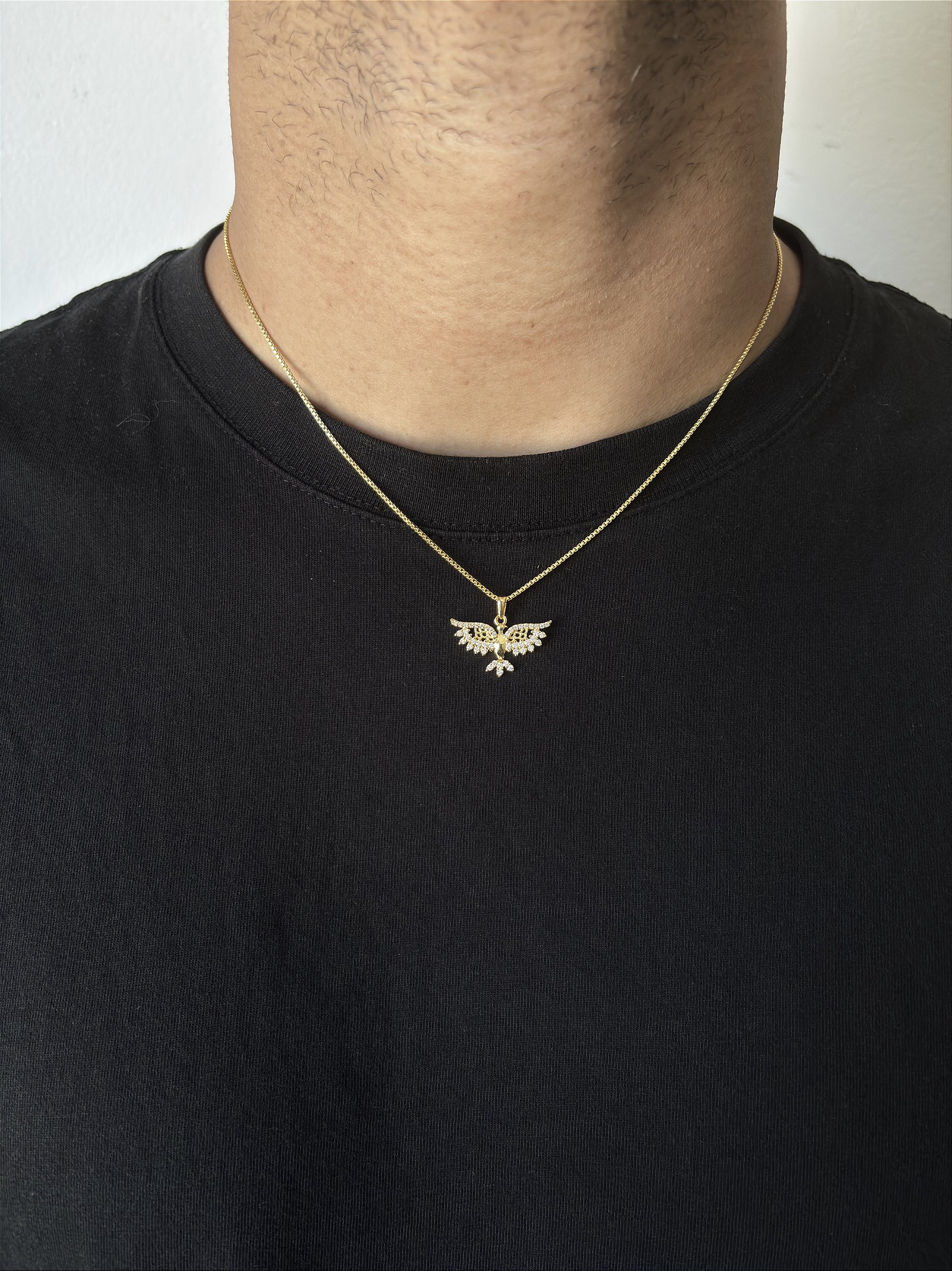 Corrente Veneziana 50cm 1mm + Pingente Passaro Cravejado (24,3X15,2mm) Banhado A Ouro 18k COR009-PIN112