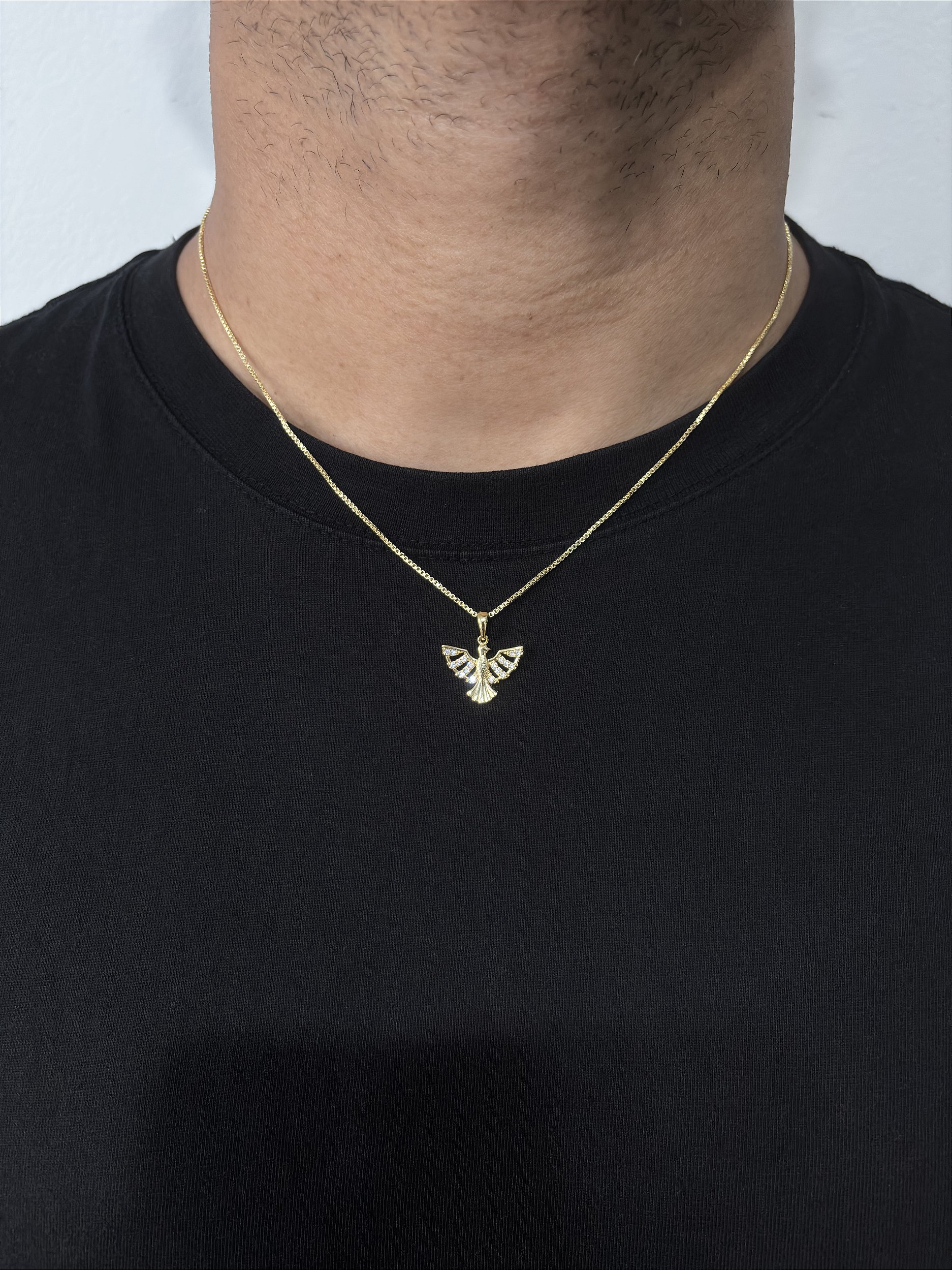 Corrente Veneziana 50cm 1mm + Pingente Passaro Cravejado Banhado a Ouro 18k COR009-PIN142
