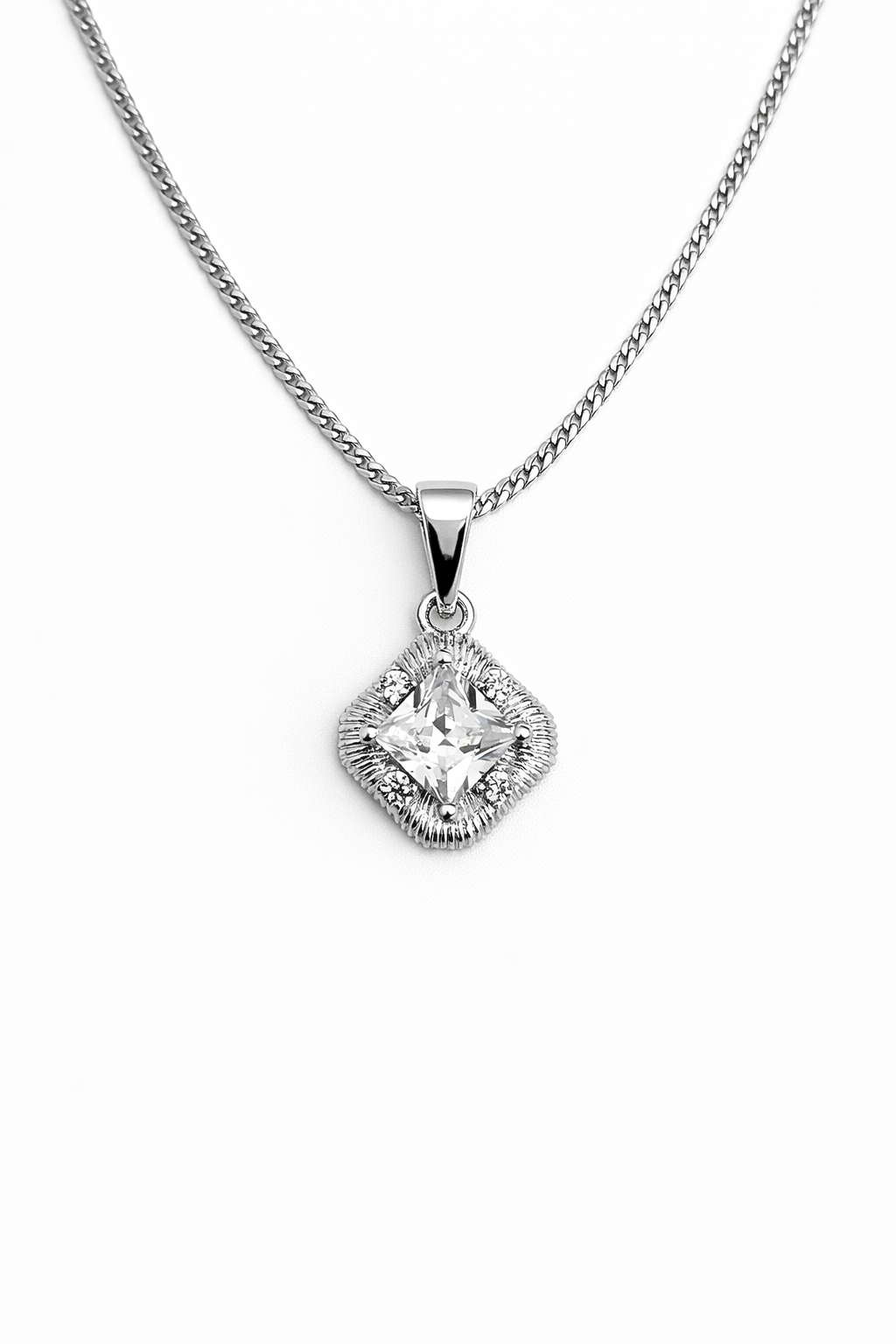 Corrente Veneziana 50cm 1mm + Pingente Quadrado 5 pedras (11x11mm) Banhado A Ouro COR002-PIN154