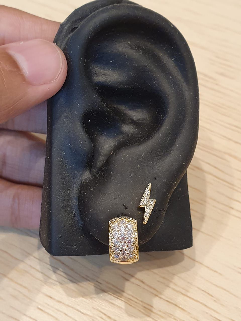Kit Brinco Masculino Par Argola 16 Pedras + Brinco Raio Banhado A Ouro 18k BRI026-BRI014