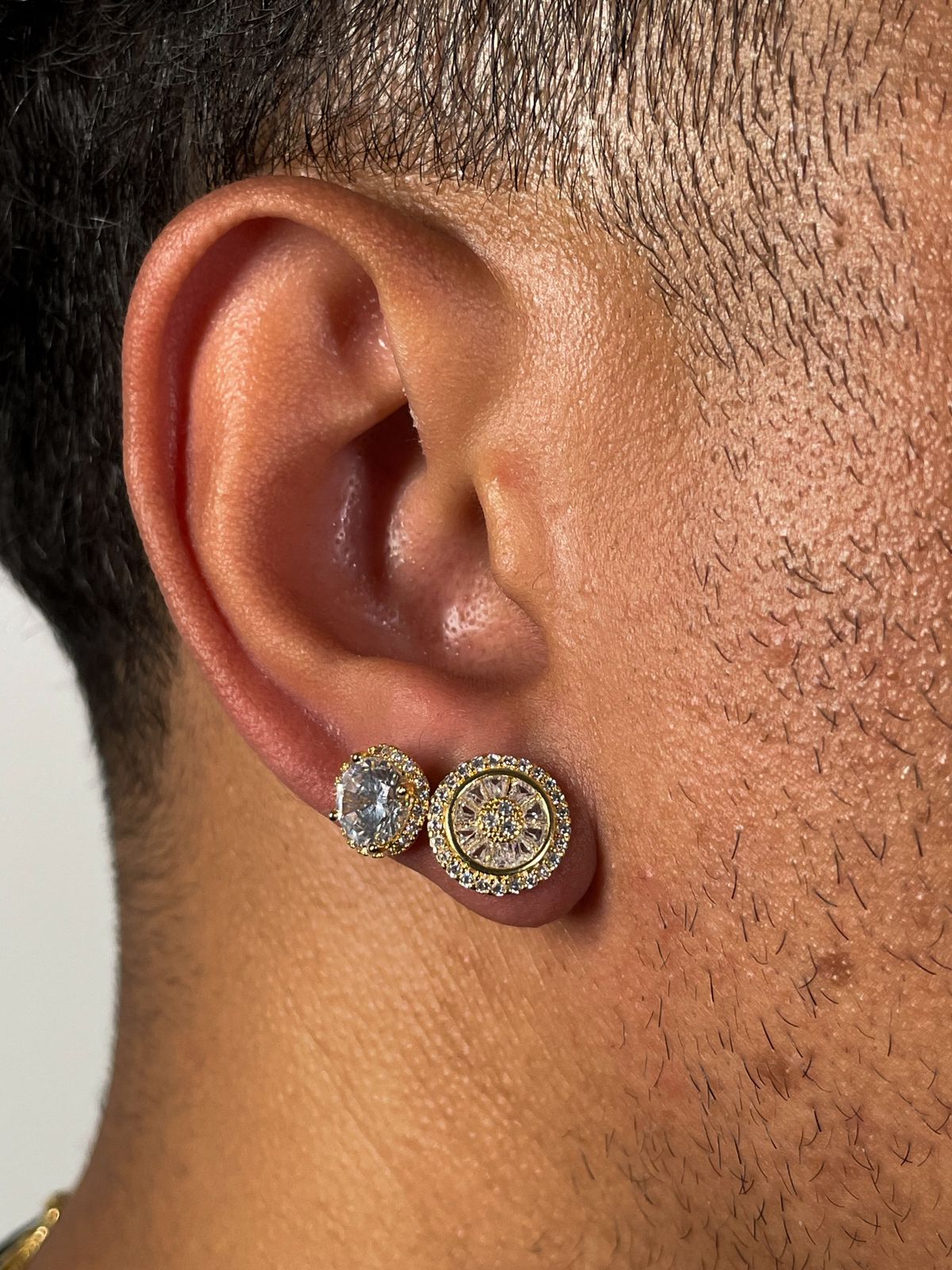 Kit Brinco Masculino Par Redondo Cravejado Pedra Retangular (12mm) + Brinco Fílip Imperial Banhado A Ouro 18k BRI167-BRI