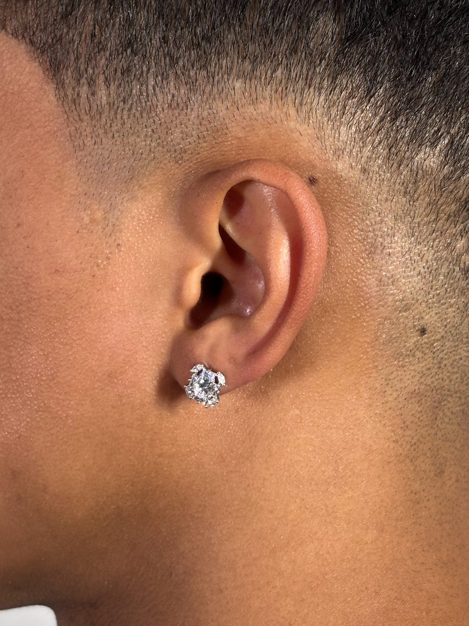 Brinco Masculino Par Argola Cravejada Com 8 Pedras (11,6X4,3mm) Banhada A Ouro Branco BRI006