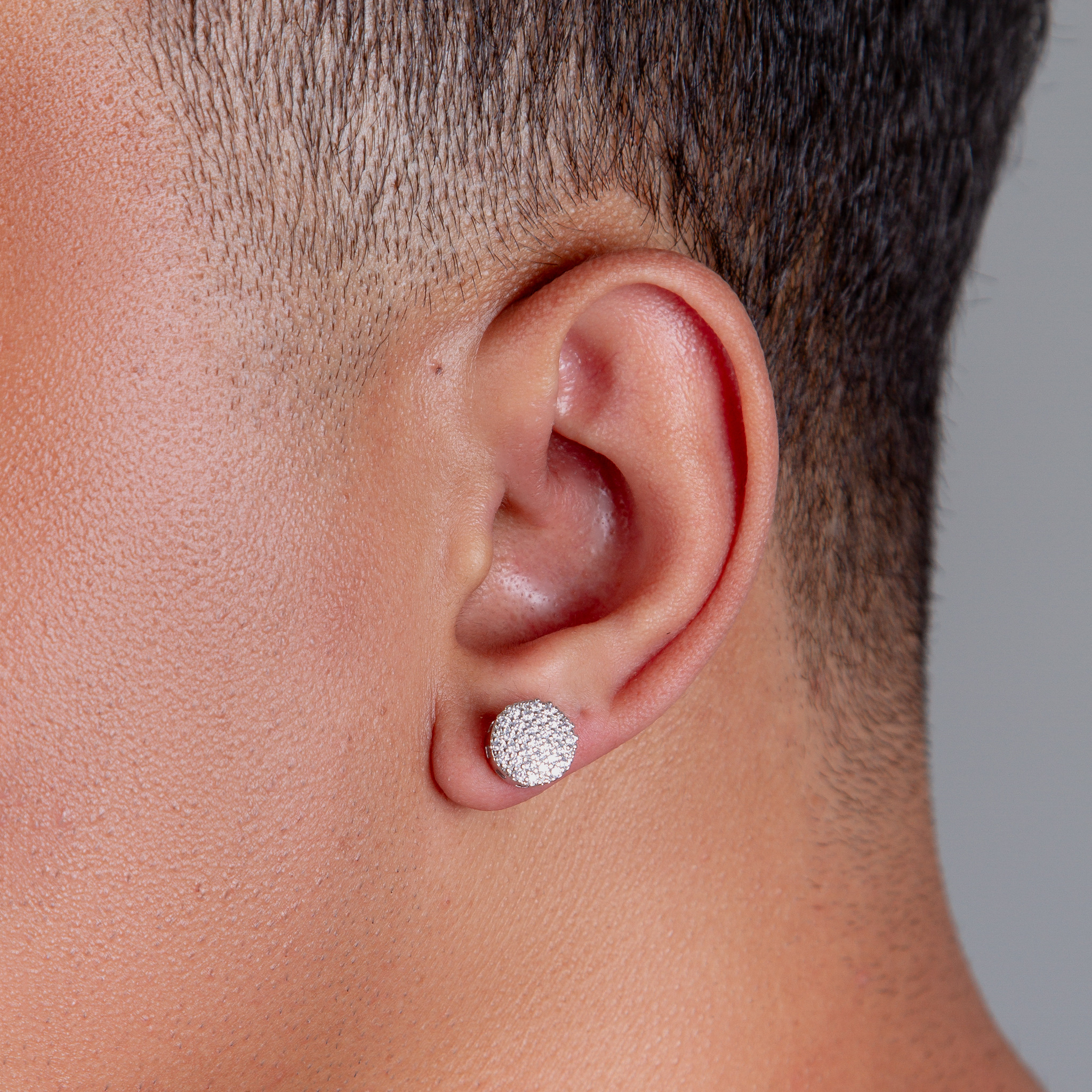 Brinco Masculino Par Redondo Cravejado Torre (9mm) Banhado A Ouro Branco BRI030
