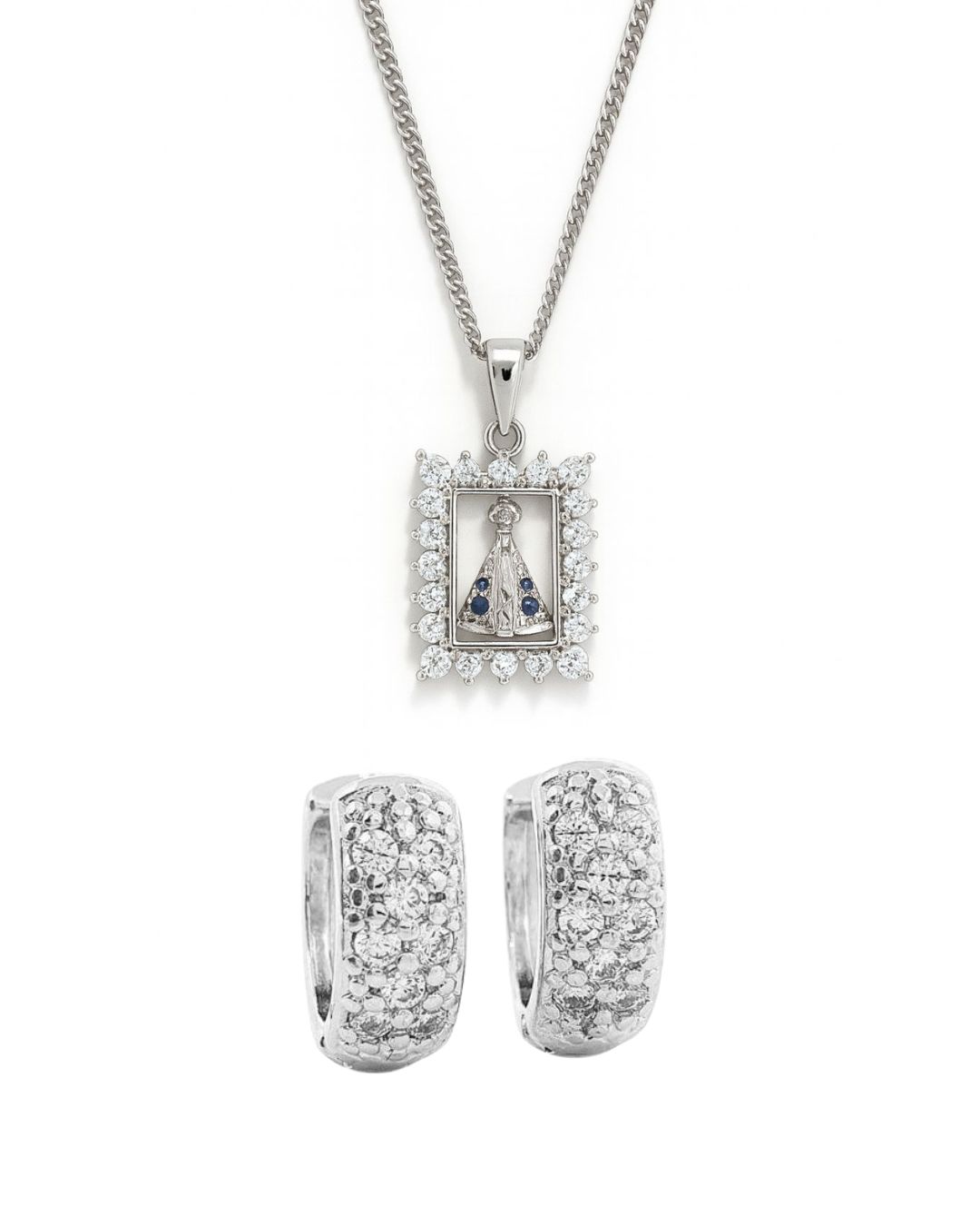 Pingente Nossa Senhora Cravejado Quadrado (15x18mm) Banhado A Ouro Branco PIN088