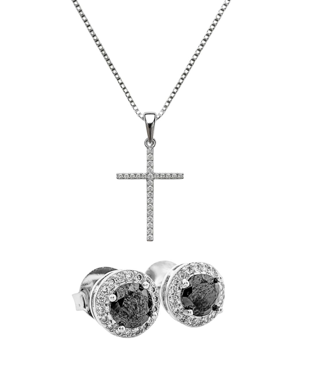 Brinco Masculino Par Redondo Cravejado Fílip 1 Pedra Preta (7mm) Banhado A Ouro Branco BRI037