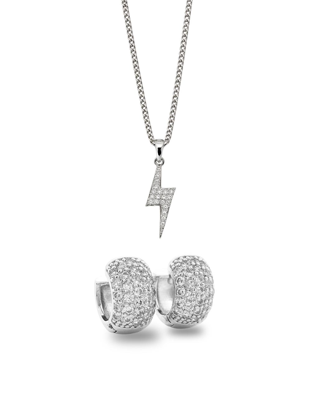 Pingente Raio Cravejado (7,8x21mm) Banhado A Ouro Branco PIN076