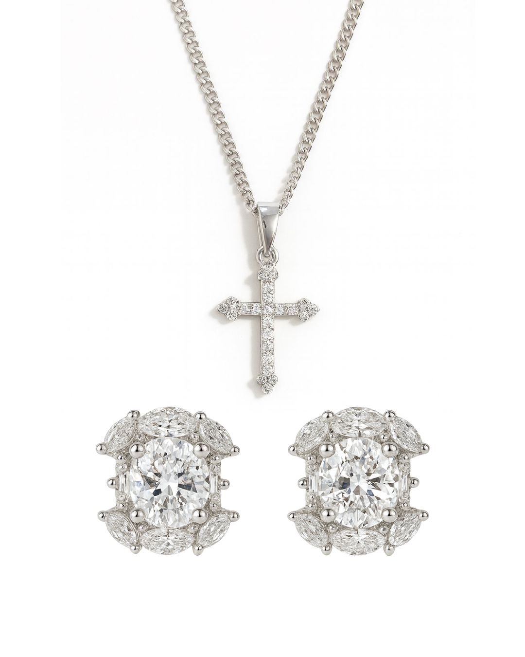 Pingente Cruz Cravejada Palito (13,2X19,7mm) Banhado A Ouro Branco PIN001