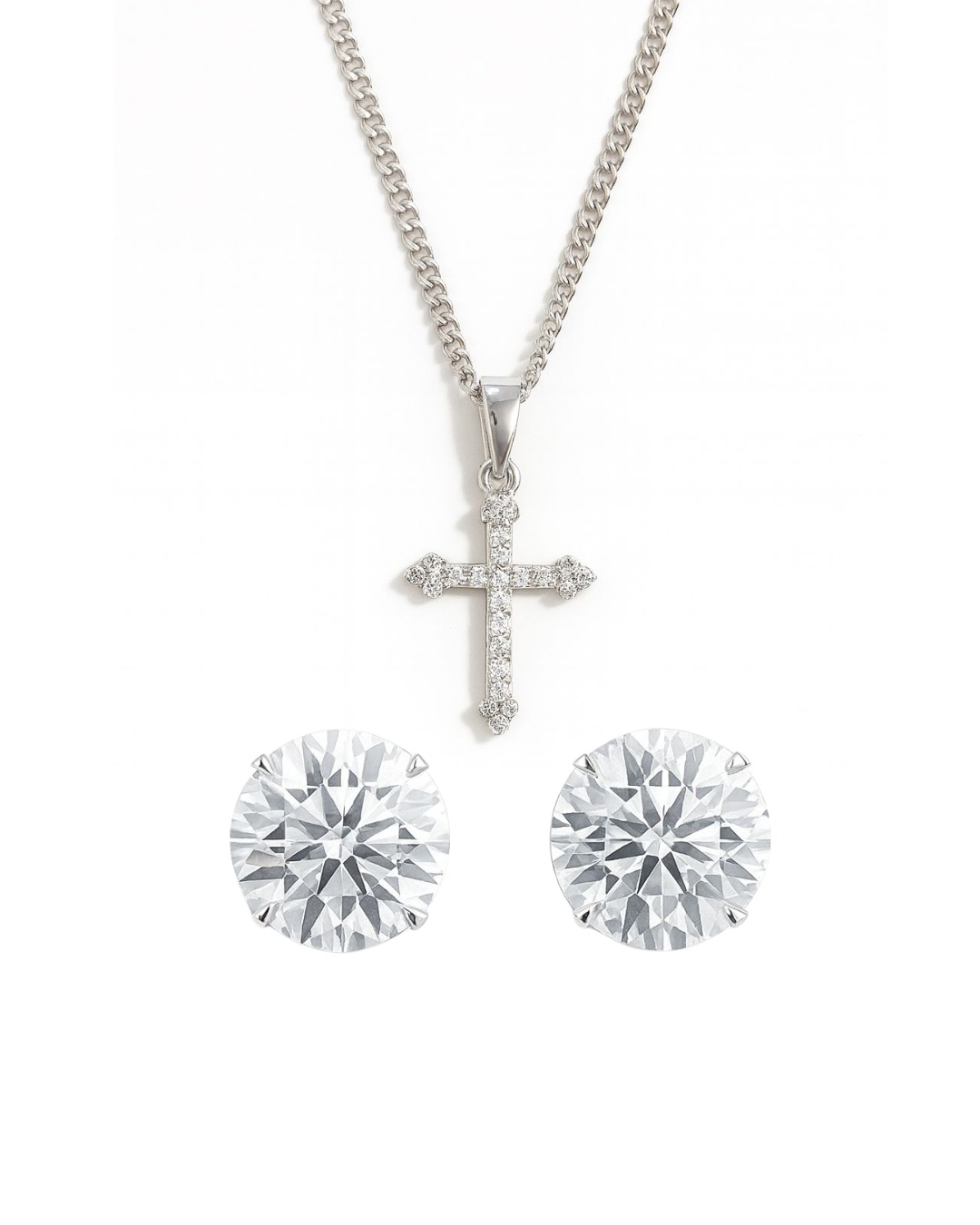 Pingente Cruz Cravejada Palito (13,2X19,7mm) Banhado A Ouro Branco PIN001