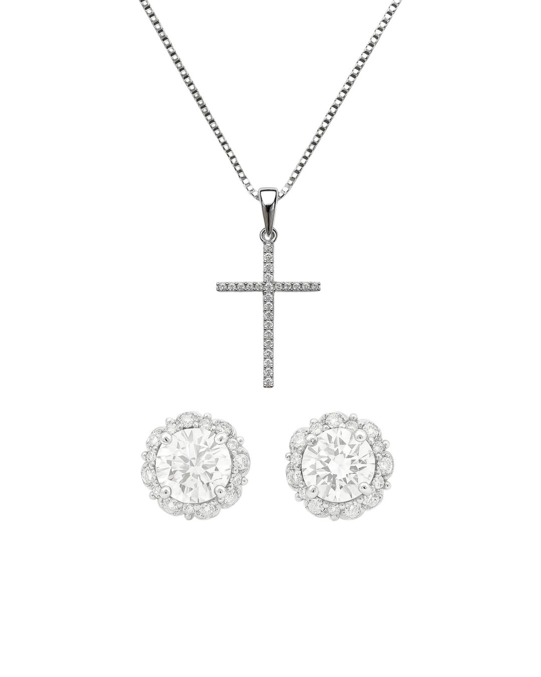 Pingente Cruz Palito Chapada Cravejada (22X14,2mm) Banhado A Ouro Branco PIN009