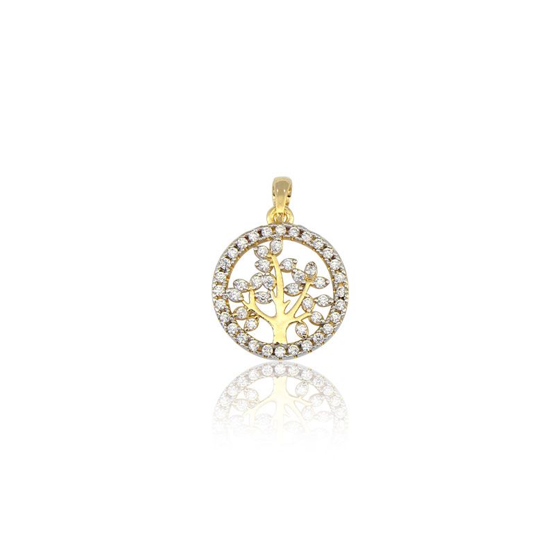 Pingente Circulo Arvore Cravejado Banhado a Ouro 18k PIN155